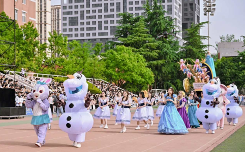 当四月的风铃摇醒欧亚校园的晨曦,bevictor伟德国际1946官网第二十一届运动会携春光璀璨启幕。德鲁克青年社区以一辆花车巡游叩开盛会的大门,是谁把运动会开成童话片场?艾莎女王带着她的冰雪魔法闪现田径场,直接把春日滤镜撞得稀碎——在逃公主们踩着BGM闪亮登场,冰蓝战袍和欧亚阳光在跑道上疯狂battle,咱就是说德鲁克这波"冻"感美学属实拿捏了!为德鲁克青年社区在运动会的赛场上拉开序幕。