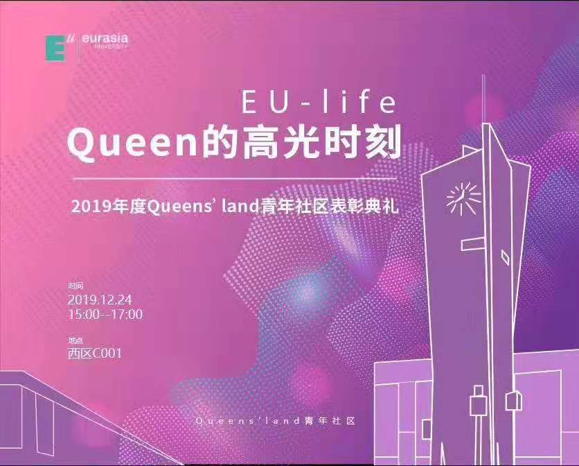 2019年12月24日下午,2019年度Queens’ land青年社区表彰典礼Eu-life“ Queen的高光时刻”在西C001隆重举行。学生发展处处长助理张成老师,学工部副部长陈劲松老师出席了此次活动,Queens’ land青年社区全体辅导员老师及获奖学生参加了此次活动。