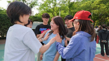 Part 1信任圆圈:6组人围成圈,圈中心站1名小组成员,闭眼向后倒,由队友轮流稳稳接住。起初有人绷直身体不敢放松,直到徐老师亲自示范,并说道:“信任是卸下防备,像落叶相信风的托举”。大家慢慢放下戒备,一点点尝试,信任感一步步增进,最终每个小组都顺利完成了游戏体验。“信任圆圈”就像人与人之间建立信任感的过程一样,作为心理委员,更应该去做首先“闭眼向后倒”的那个人。