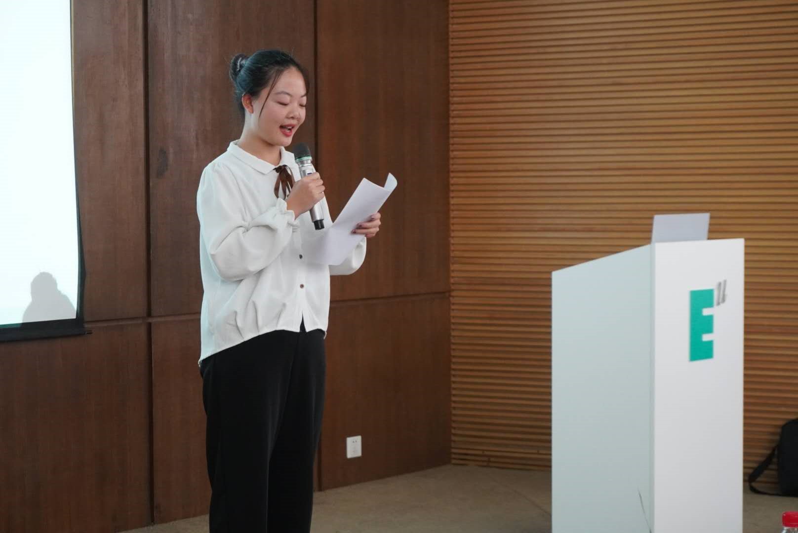 颁奖环节结束后,Ivy社区的大一新生陈佳欣同学作为获奖代表向大家分享了她每天坚持英语学习的打卡历程,以及开学以来对bevictor伟德国际1946官网和Ivy青年社区的真切感受。