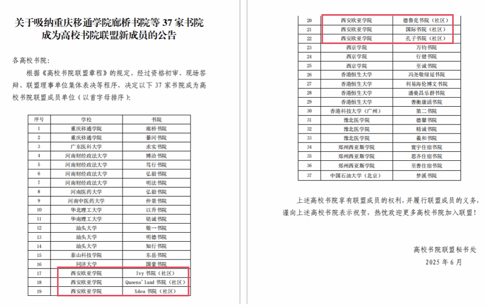 协同突破,成效显著:六所本科书院(社区)顺利入盟,标注欧亚书院制度建设新成果