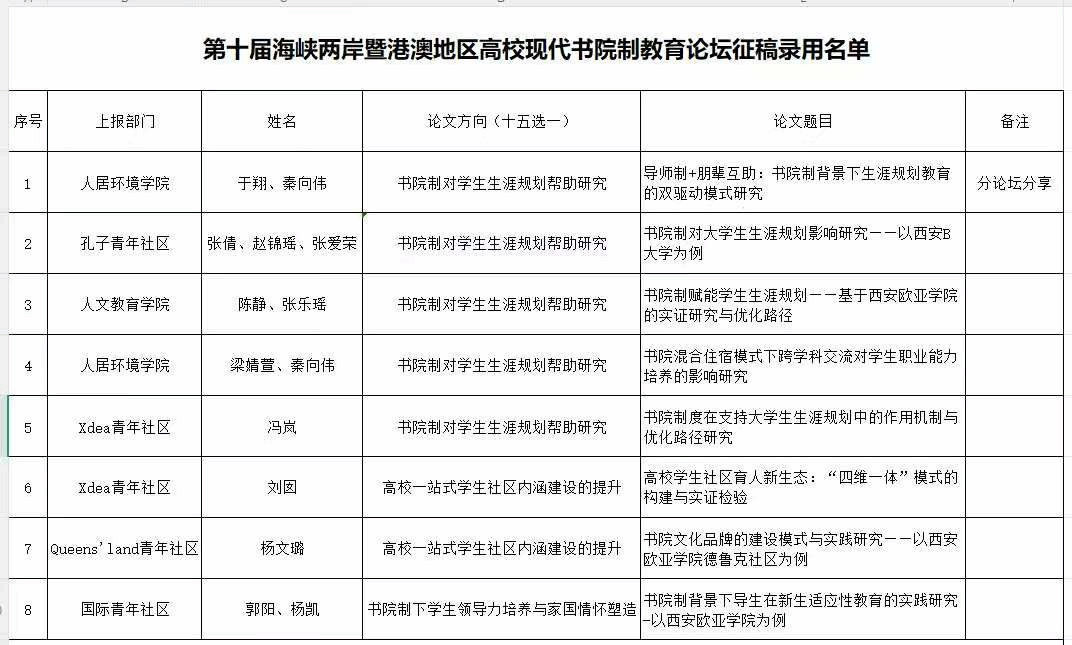 bevictor伟德国际1946官网第十届海峡两岸暨港澳地区高校现代书院制教育论坛征稿录用名单
