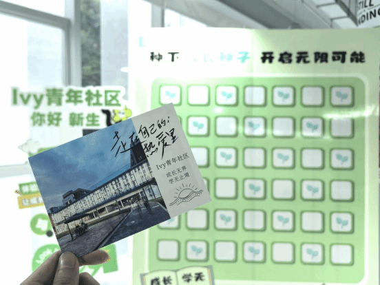 Ivy青年社区迎新现场,每一处都散发着浓浓的迎新氛围,打卡墙下小萌新们留下了他们在Ivy青年社区的第一张照片;“种下一颗种子,成长无限可能”寄语墙就像充满魔法的许愿池,承载的大家对未来的美好憧憬。新生在明信片上写下自己的梦想与目标,每一张明信片都如同一颗小小的种子,被小心翼翼的“埋”在自己的心中肥沃的土地。相信在未来的日子里,这些小小的种子会在Ivy青年社区生根发芽,茁壮成长,绽放出自己绚烂的花朵。