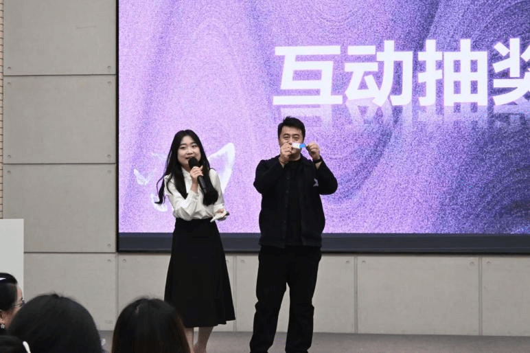 首轮互动抽奖以听曲猜歌名、童年电视剧名竞猜为主题,每一段旋律、每一个片段都藏着与“她”共有的成长回忆,唤醒每个人心底的柔软与共鸣。活动中,同学们踊跃举手,在熟悉旋律里重温童年时光,整场活动充满了治愈与欢乐。