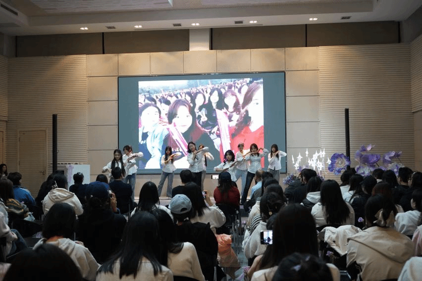 现场播放起辅导员老师的寄语视频《看见》,看着老师们一张张满含笑意的脸庞浮现在画面中,大家回想起互相陪伴的时光,让师生间的联结更加紧密。随着视频落幕,精彩的舞蹈缓缓上演,灵动的舞姿诉说着同行的热忱,轻盈的身影藏着向上的朝气,让整场活动洋溢着热烈而欢快的节奏。