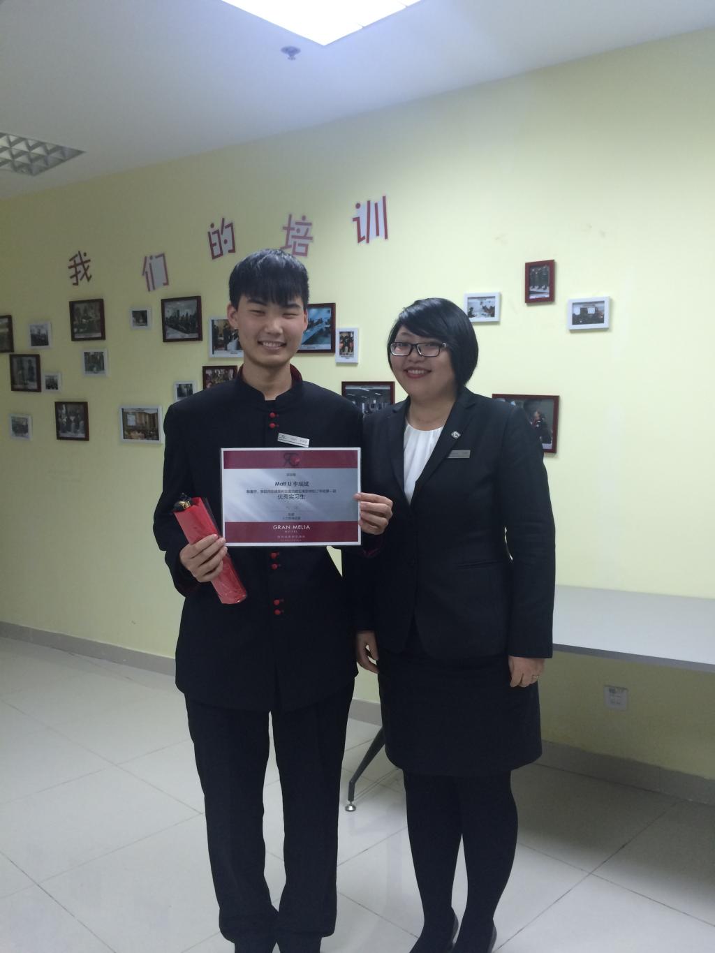 (图二)企业导师刘静为优秀实习生李瑞斌颁发荣誉证书