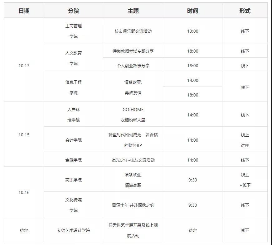 1.学校校友主题活动+各二级分院校友活动