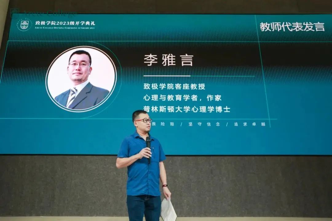 致极学院开学典礼的中间环节充满了激情和启发。学术顾问委员会主席、著名管理学家、美国管理学会前会长徐淑英教授的祝贺信传达了对全人教育的坚定信仰。她希望新生能够践行致极的CARE精神,追求终生学习、终生关爱和终生卓越。