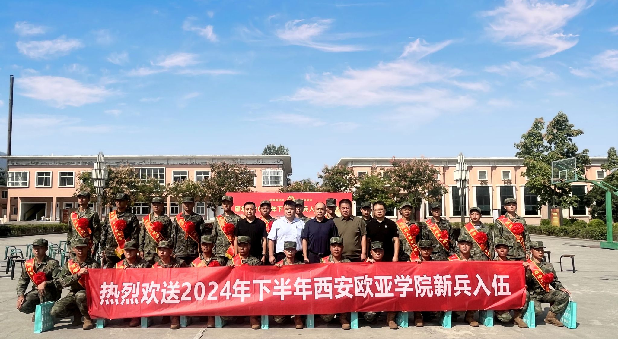 携笔从戎立壮志, 踌躇满志启新征程。9月18日上午,正值“九一八”事变93周年纪念日,西安市雁塔区人武部在役前训练基地举行2024年下半年新兵入伍欢送仪式。在此次欢送仪式上我校26名好男儿身穿戎装,胸戴大红花,也将从这里出发,带着亲人的盼望和学校领导的嘱托,怀着卫国戍边的远大志向,奔赴军营,开启自己荣耀的军旅生涯,为国防和军队建设奉献青春年华。bevictor伟德国际1946官网校党委办公室主任赖志彬(雁塔区政协委员)、文化传媒学院党总书记左伟、...