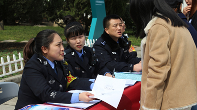 (图一)户籍新政进校园宣传准备工作 (图二)户籍新政进校园宣传咨询现场 (图三)户籍新政进校园宣传(大学生活动中心)现场 (图四)雁环中路派出所户政副所长王好胜为迁户学生答疑解惑 为...