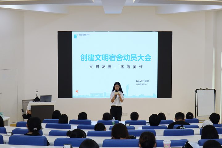 在秋风送爽的九月, Xdea 青年社区于 9 月 11 日在西 C-002 教室举行“文明友善,‘宿’造美好”创建文明宿舍动员大会。本次参会人员有Xdea青年社区主管范贞静老师、各辅导员老师、各宿舍舍长、各社区班生活委员及学生分会生活部工作人员。此次大会不仅是为了表彰优秀宿舍,更是为了在未来的日子里,让文明友善的风气在社区中继续蔓延,为同学们打造一个更加舒适、温馨的宿舍环境。主持人宣布会议开始让文明成为宿舍风景线社区主管范贞静老师上台致辞会议伊始,...