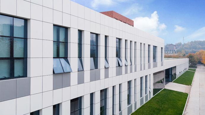 南区教学楼位于行政中心西侧,与北侧的联体教学楼共同围合起欧亚的核心公共空间。其外立面用红色面砖与白色涂料,辅以灰色面砖和玻璃材质,形成具有立体构成意味的建筑风格。在空间上,采用了模数化的开窗设计,在红、白、灰体块的开窗方式各具变化的同时,又使各部分统一为一个有机的整体。楼宇整体呈回字形,采用首尾相连的合院式布局组织起艾德艺术设计学院、文化传媒学院、数据科学学院和会计金融学院四大分院的教学楼群。教学楼建筑群的四个分院拥有各自独立的入口及接待处,...