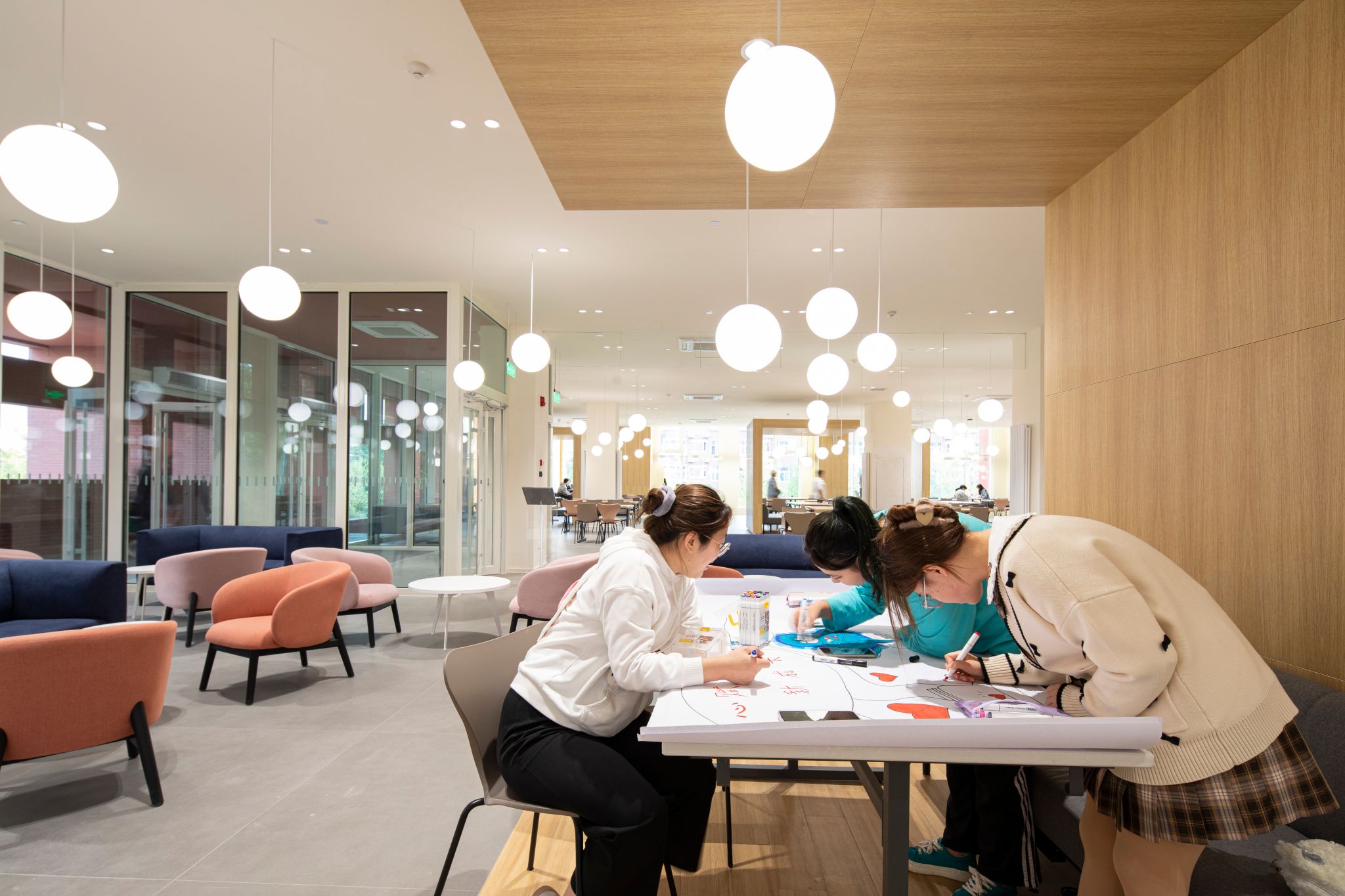 bevictor伟德国际1946官网26周年校庆之际,原餐饮大厦改造完成,“虹桥学生中心”正式投入启用。虹桥学生中心不仅是拥有全国各大菜系的欧亚美味集聚地,其建筑构造,在保留原空间形态的基础之上,还通过多种结构的设计,表达了更新、更多元的嫁接——搭建一个能够让学习随处可及的,集阅读、社交、商业等功能为一体的复合型空间。