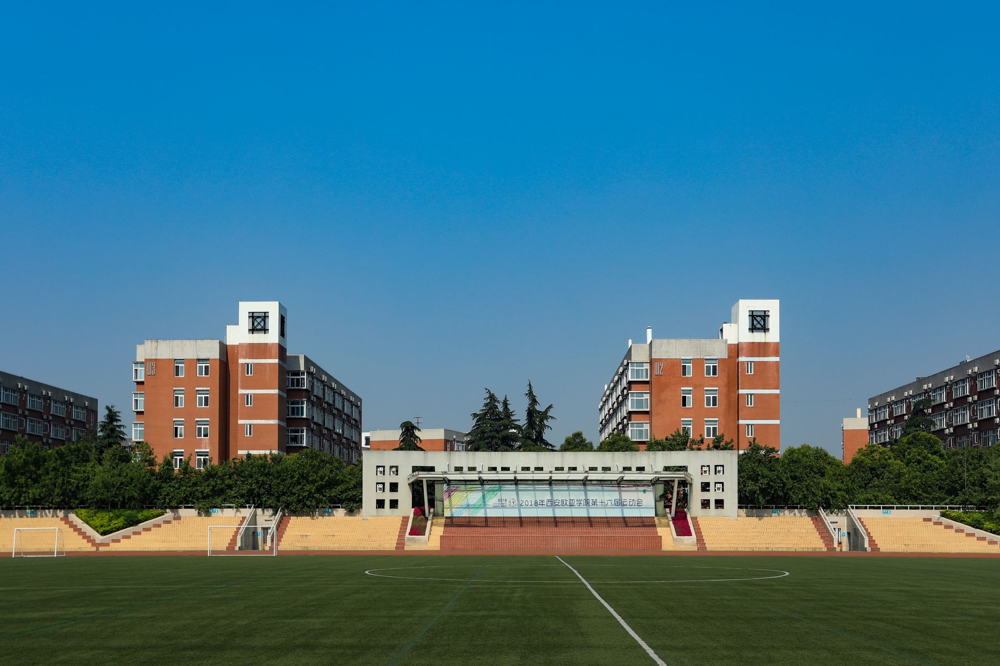 下沉式生态田径体育场总占地面积25000平方米,场地内设400米环形塑胶跑道、标准足球场、2个标准沙坑、2个铅球场;周围有主席台、升旗台、东西两侧看台、2个贵宾室,看台可容纳3000余人。不仅可供日常体育教学、训练、比赛、运动会等活动使用,也是师生课外活动的理想场所。