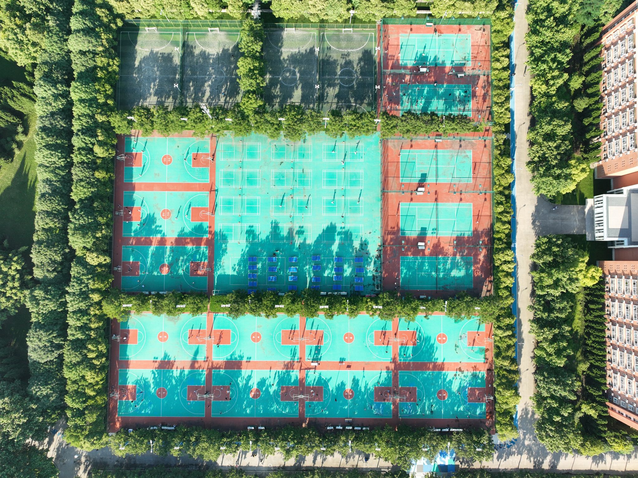 综合类室外球场建成于2016年9月,占地面积1万4千平方米,目前拥有篮球场11个,足球场(五人制)4个,网球场5个,羽毛球场15个,乒乓球场25个,排球场2个。